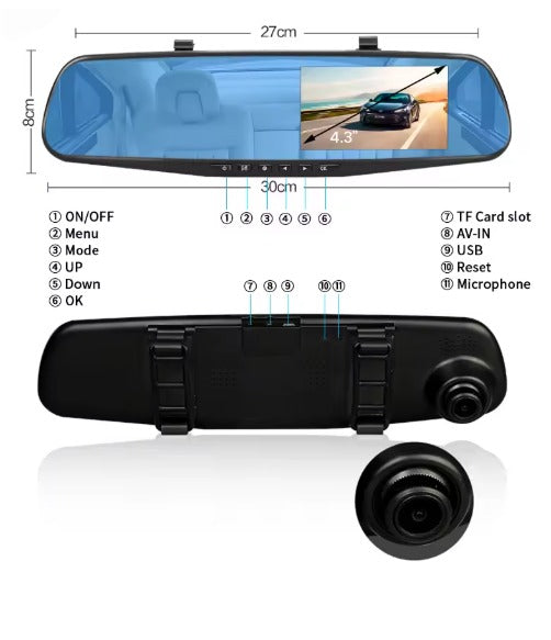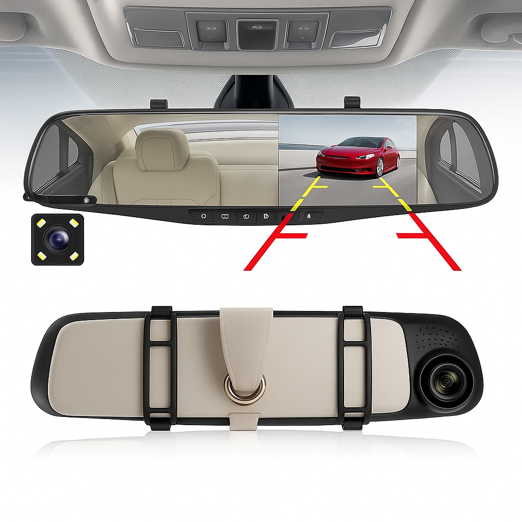 Questo sistema avanzato sostituisce il tuo specchietto retrovisore tradizionale con uno schermo ad alta definizione, fornendo una visione chiara e in tempo reale di ciò che accade vicino al tuo veicolo, registrando contemporaneamente tutto ciò che succede.